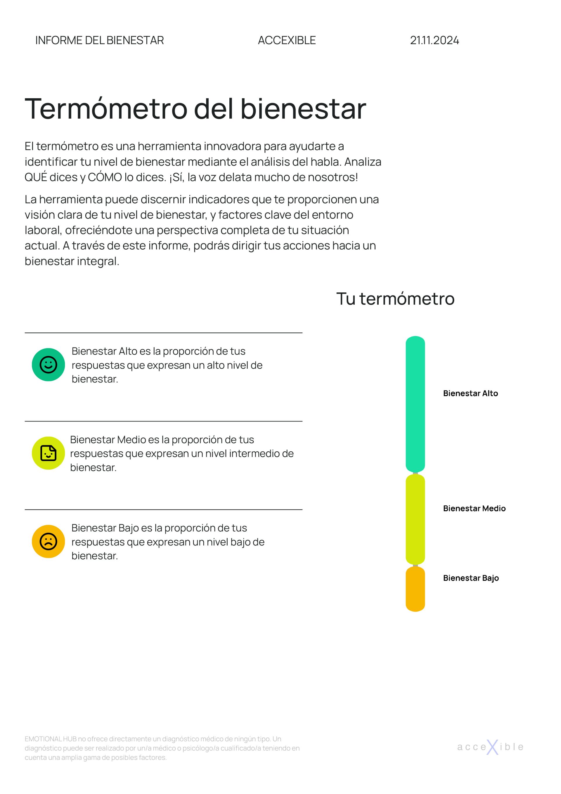 In a context where mental health issues pose a growing challenge, Accexible revolutionizes early detection through vocal biomarker analysis. The solution employs advanced AI to analyze both speech content and over 200 voice parameters, achieving over 90% accuracy in detecting mental and cognitive disorders. This technology enables companies and healthcare professionals to perform quick, non-invasive assessments in 30-60 seconds, facilitating personalized preventive interventions.